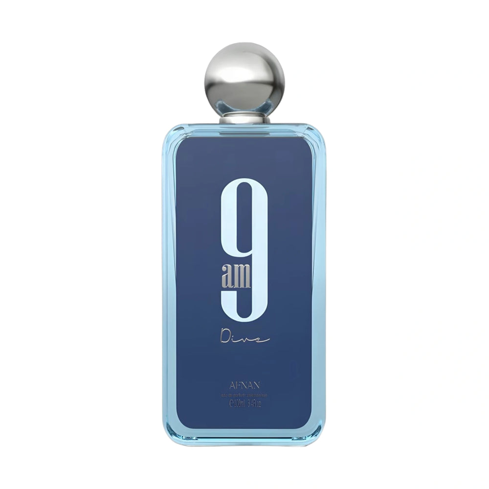9am Dive de Afnan es una fragancia de la familia olfativa Aromática Acuática para Hombres y Mujeres. Esta fragrancia es nueva. 9am Dive se lanzó en 2022. Las Notas de Salida son limón (lima ácida), menta, grosellas negras y pimienta rosa; las Notas de Corazón son manzana, incienso y cedro; las Notas de Fondo son jengibre, sándalo, pachulí y jazmín.