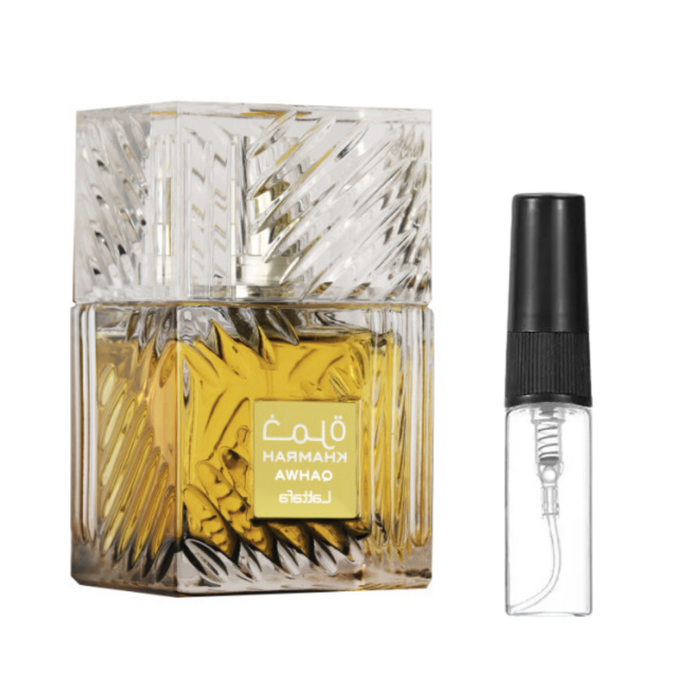 Disfrutá de Khamrah Qahwa en frascos prácticos de 2, 5 o 10ML. Cada uno viene en vidrio resistente con atomizador premium para una aplicación uniforme. Rinden entre 10 y 20 sprays por ML, según la densidad del perfume, ideal para probarlo a fondo antes de decidirte por una botella grande.