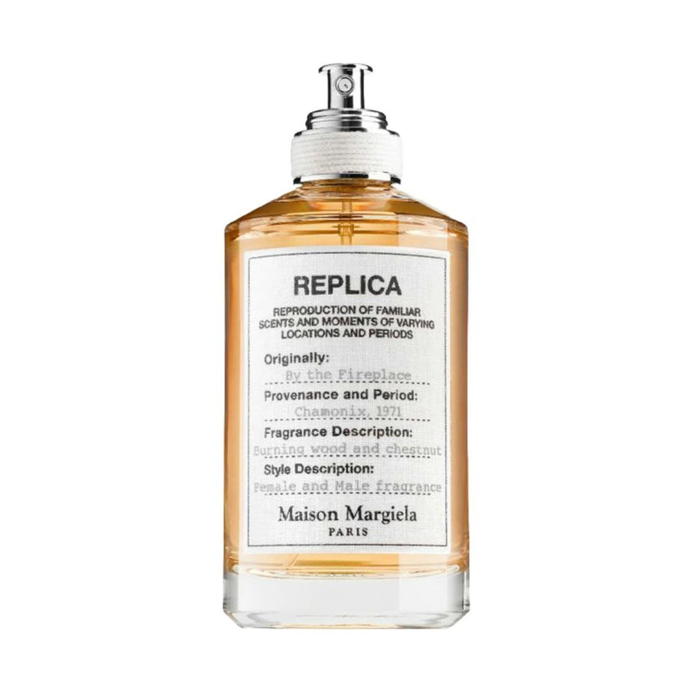 By the Fireplace de la línea Replica de Maison Martin Margiela es una fragancia de la familia olfativa Amaderada para Hombres y Mujeres. By the Fireplace se lanzó en 2015. La Nariz detrás de esta fragrancia es Marie Salamagne. Las Notas de Salida son clavos de olor, pimienta rosa y flor de azahar del naranjo; las Notas de Corazón son castaña, madera de gaiac y enebro de Virginia; las Notas de Fondo son vainilla, bálsamo del Perú y cachemira.